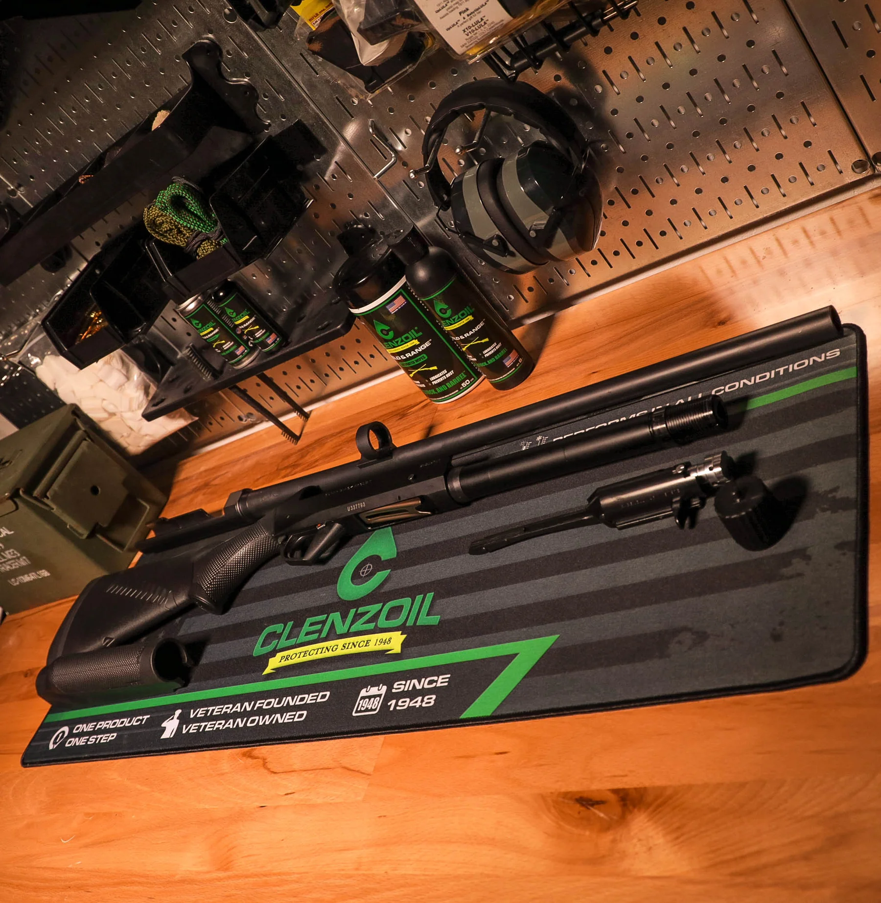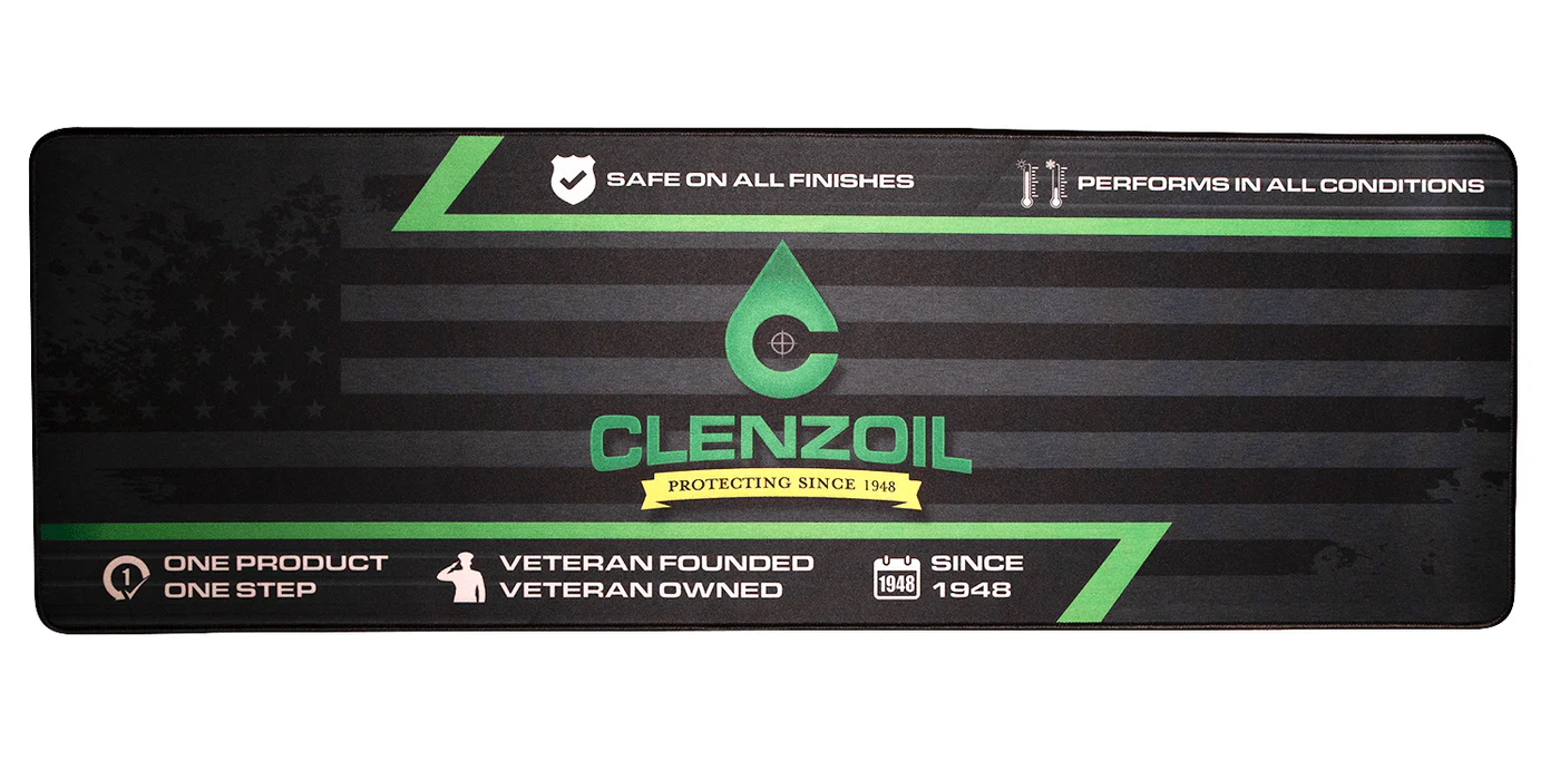 Clenzoil® Gun Cleaning Mats are made of 3MM thick water resistant polyester with a neoprene rubber backer and stitched edges. Keep your work surface free of unwanted dirt or oil. Machine wash on delicate cycle and let air dry to keep your mat clean.
