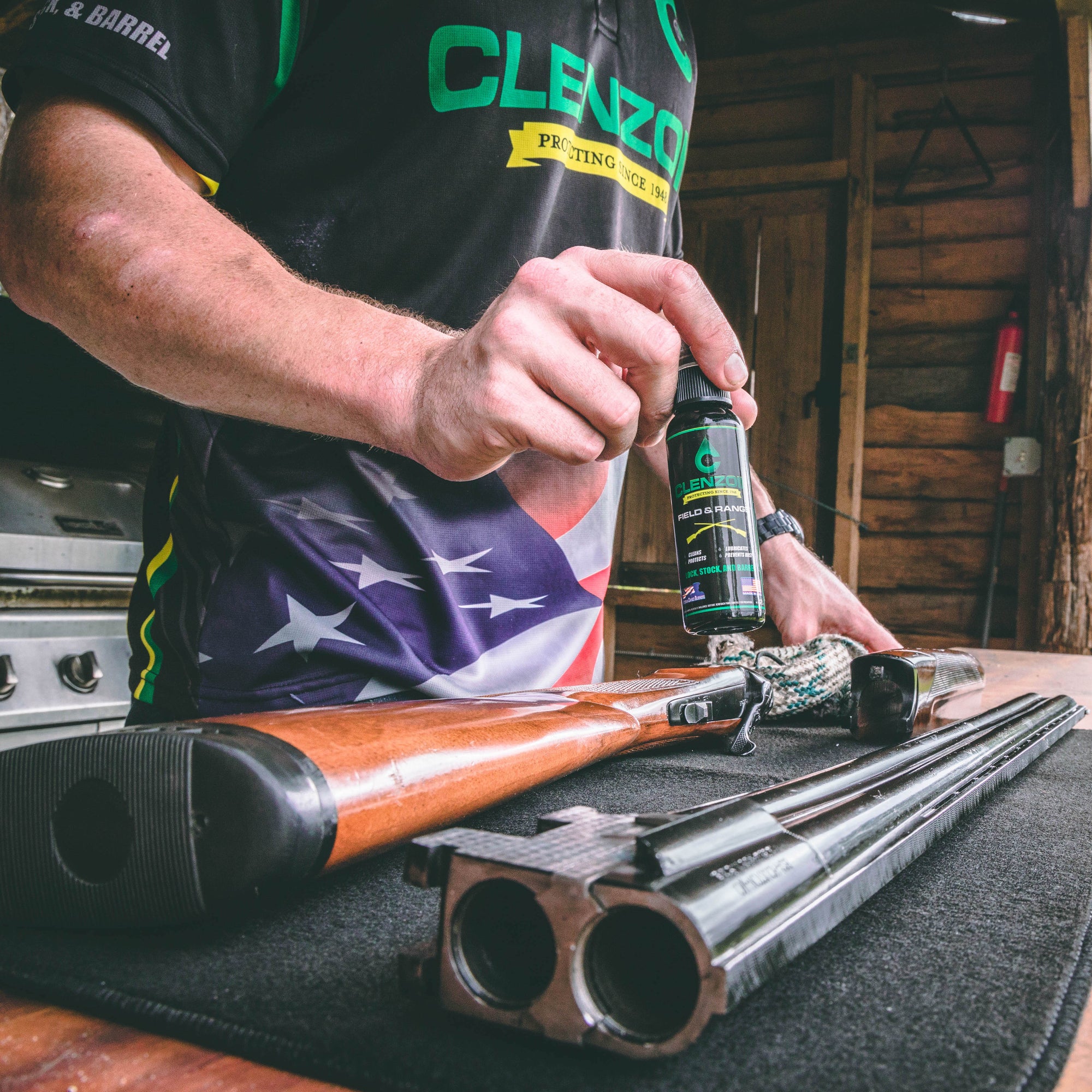 Clenzoil® Field & Range™ is a high quality one-step cleaner, lubricant, and rust preventative for Lock, Stock, and Barrel™. It is effective in removing oils, dirt, copper, lead, and other contaminants. It provides a thin, non-greasy coating that prevents rust, and lubricates all moving parts of fine firearms and sporting equipment. Clenzoil® also nourishes, preserves, and protects wood and leather. It will not harm polymers or other synthetic surfaces. Clenzoil® is great for wood stocks and grips, as well as leather holsters, scabbards, and slings. Not recommended for painted surfaces.