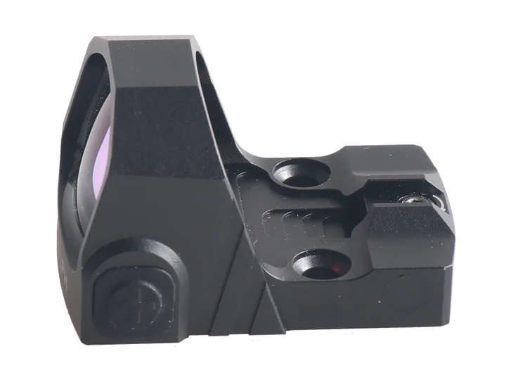 The Reflex Red Dot’s low mounting height makes it the perfect solution for handguns with cutout slides. Offers the simplicity and speed advantage of a red dot, while co-witnessing with suppressor-height iron sights.
